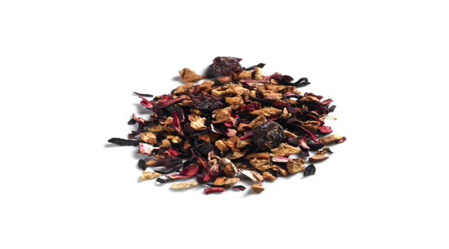 Almadarabok, hibiszkusz virág, és vörös áfonya édes-gyümölcsös keveréke, ízletes nyári gyümölcsök zamataival finomítva.